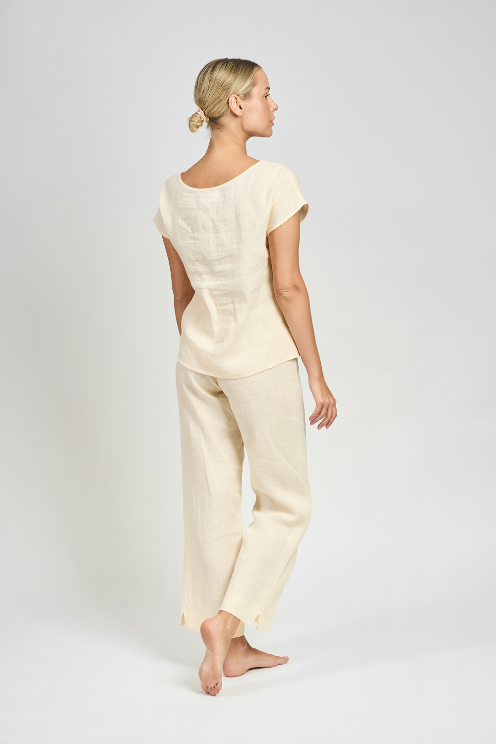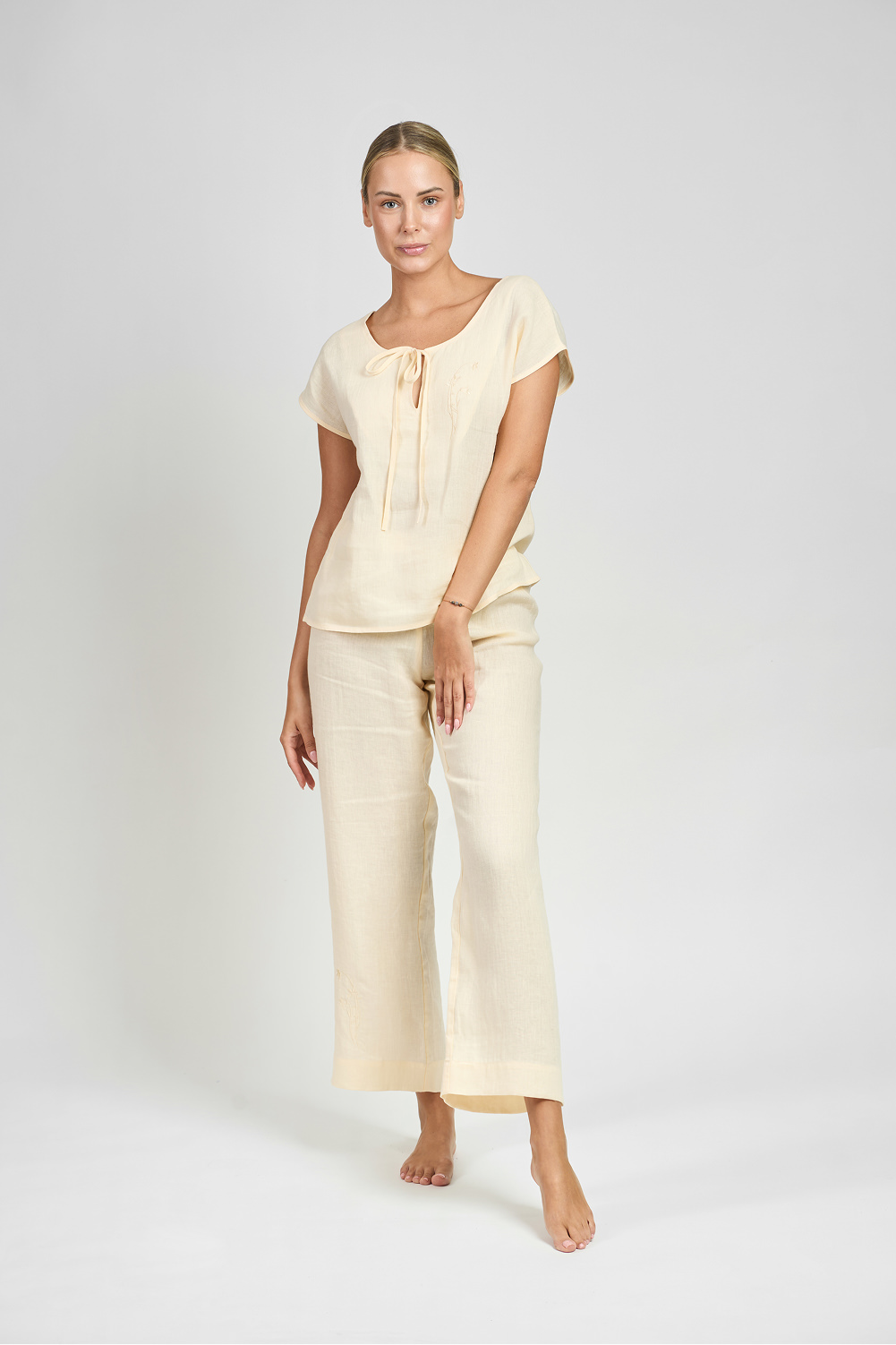 In our vanilla-colored linen sleep blouse, you’ll feel like you’re in the embrace of a soft summer breeze, enjoying every night spent in harmony and peace. Indulge yourself in the sophistication that is synonymous with comfort and style.