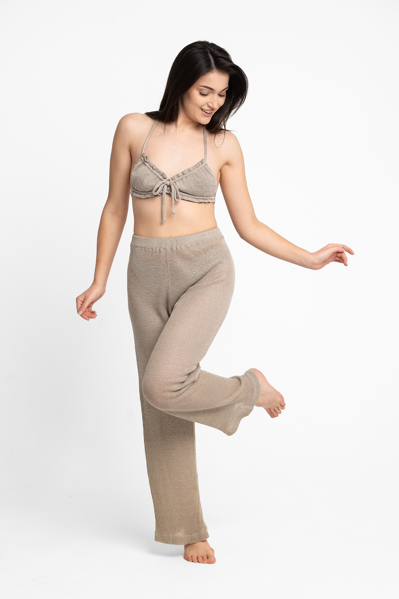 • top plażowy z elastycznej dzianiny lnianej,