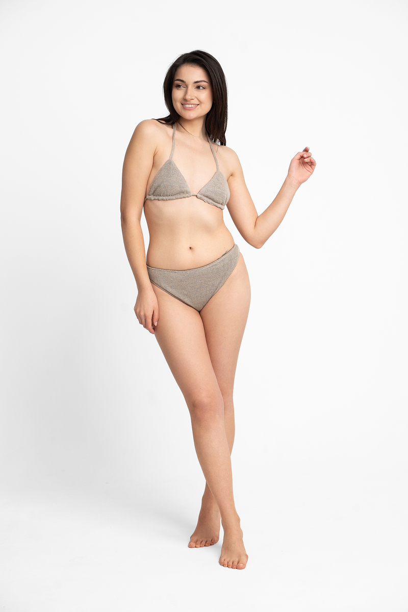 Odkryj piękno ukryte w prostocie. Góra od bikini z linii Simple to hołd dla minimalistycznego designu, który nie potrzebuje zbędnych ozdobników, by zachwycać. Jej trójkątny fason i subtelne wiązania tworzą ponadczasową formę, która idealnie współgra z naturalnym rytmem lata.