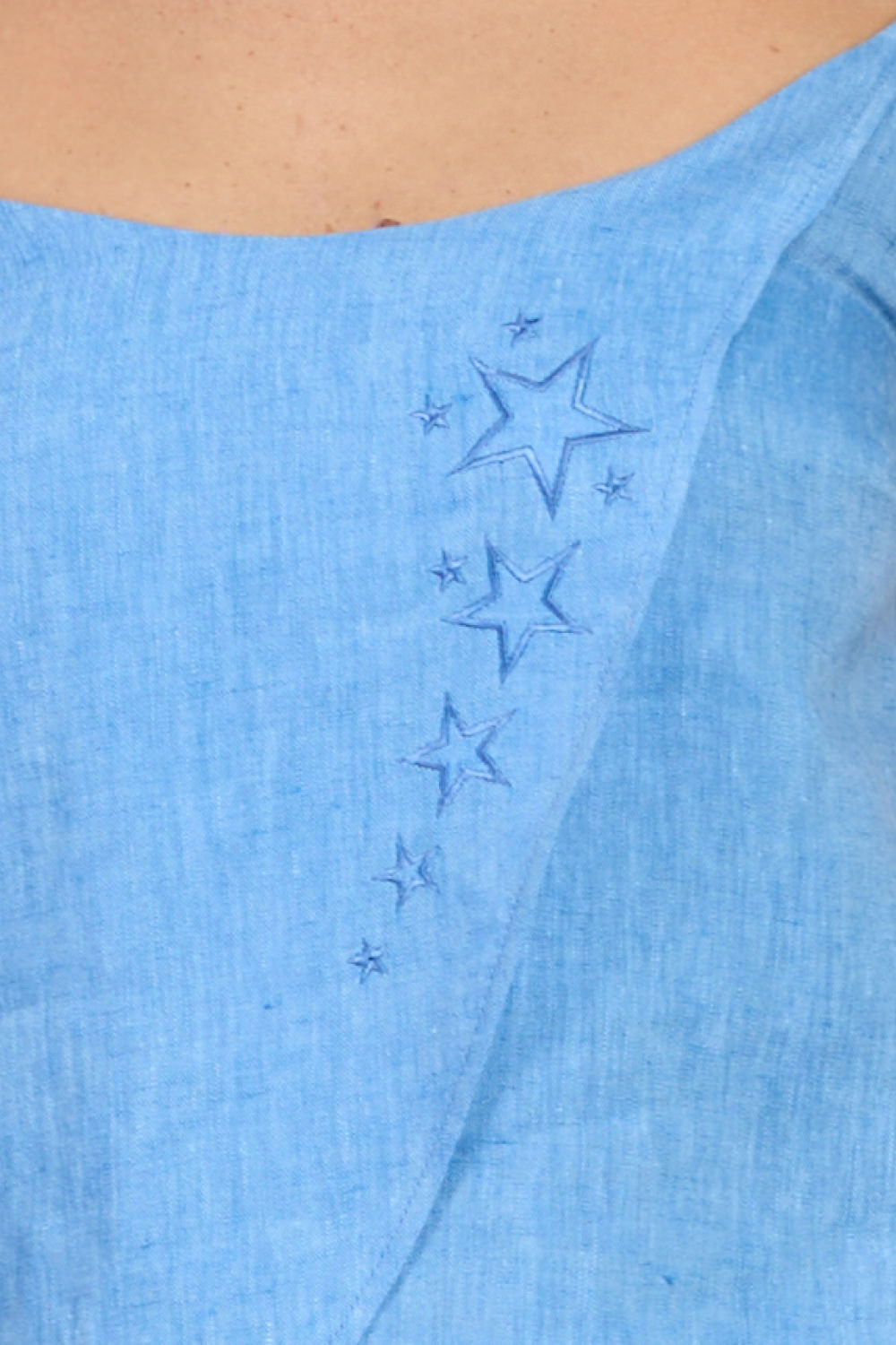 Poczuj dotyk nocnego nieba wraz z topem Gwiezdny Blask. Uszyty ze zmiękczanego lnu, okrywa skórę delikatnością niczym cichy szept letniej nocy. Subtelny haft przedstawiający migoczące gwiazdki dodaje całości niezwykłego uroku, sprawiając, że każda chwila relaksu nabiera blasku prawdziwej magii. Regulowane ramiączka i gumka z tyłu zapewnią Ci idealne dopasowanie i wygodę.